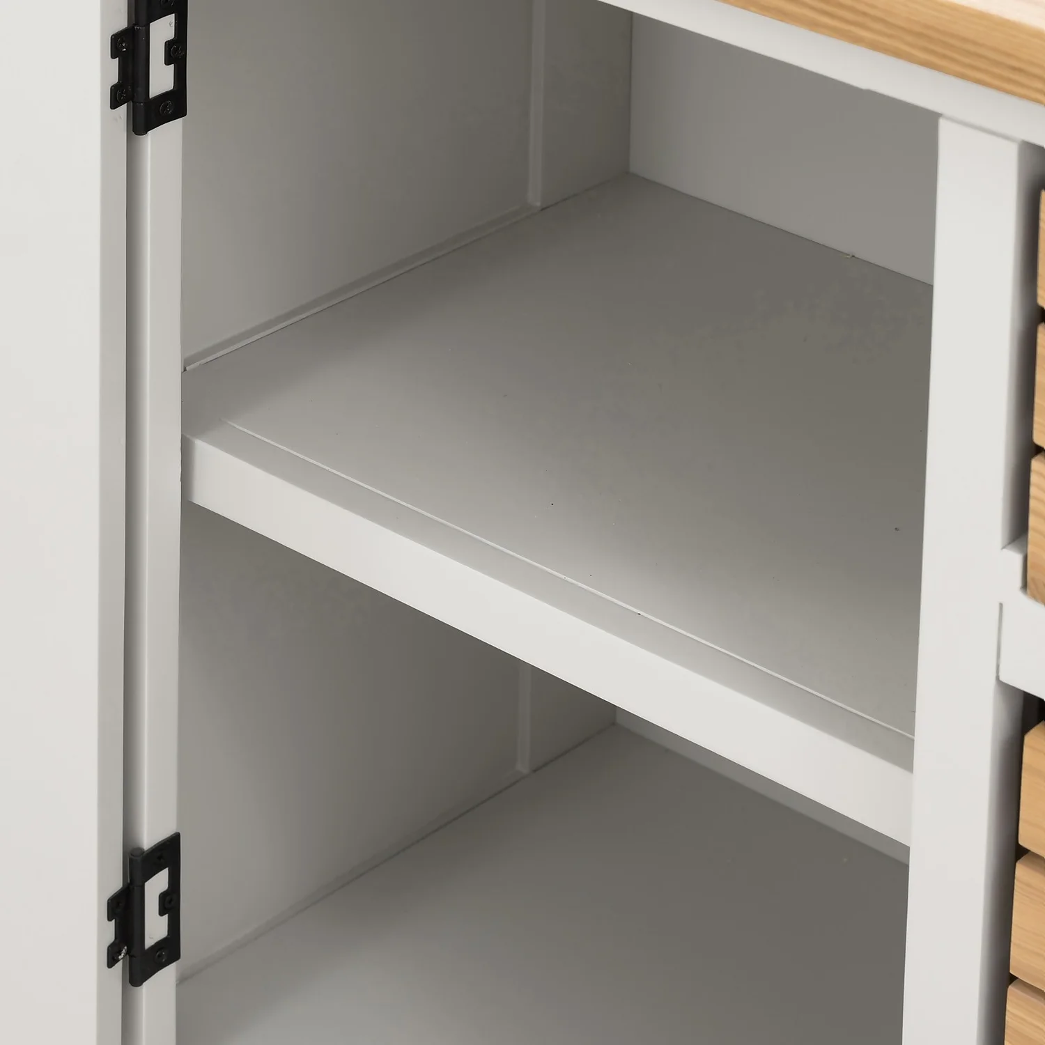 Effortlessly stylish. When we designed this collection, we channelled the look of a charming cottage in the Cotswolds. We’ve taken that farmhouse style and modernised it. Say hello to our Ashstead range. This two-tone sideboard boasts a thick oak top and chunky frame to give the unit both presence and stability. With a cupboard and 3 crates, it will really up your storage game. Keep crockery, board games and blankets tucked neatly out of sight, then use the top to show off some of your favourite trinkets. The stand-out feature of this sideboard has got to be the solid oak crates. They offer a wonderful contrast to the painted frames and give you a quaint way to store your belongings.