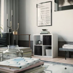 With cut out chrome finish ring pull handles for easy sliding or movement, you can store your belongings in this Insert and still maintain a uniform decor at home. Featuring a premium woven fabric construction and high-quality binding, you can use them alone, on shelves or with a Clever Cube unit; they are as good-looking as they are functional.